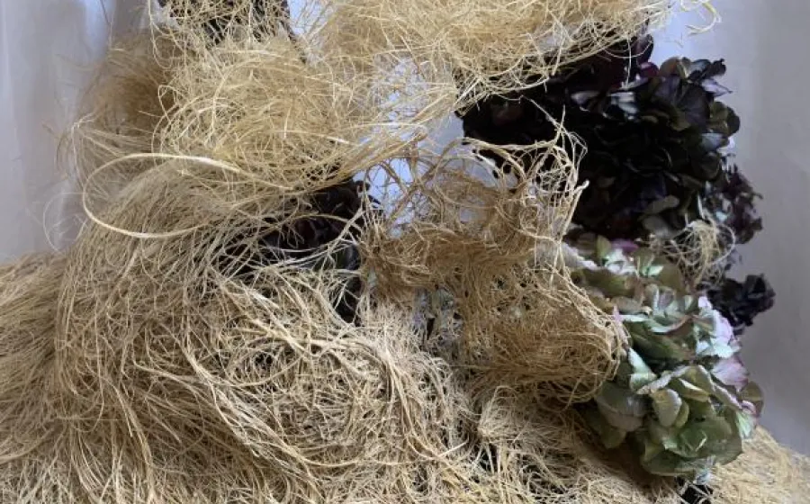Jarman asumió la grava, el viento y la sal como fundamento de su jardín; del mismo modo, la propuesta de KOKON toma la Nave Una – Nave 17 como su propio “campo de grava”: un soporte crudo e industrial que no se oculta, sino que se activa. Ante esa materialidad densa, una pieza textil de esparto —ligera y altamente transparente— se suspende de la estructura existente e infiltra levedad en el entorno. El gesto es mínimo, pero transformador: no compite con la arquitectura, la revela.